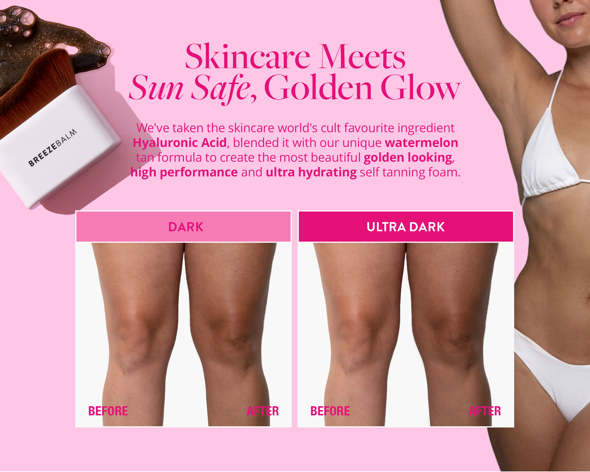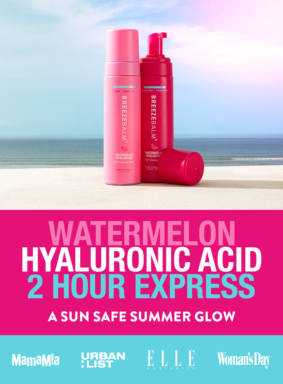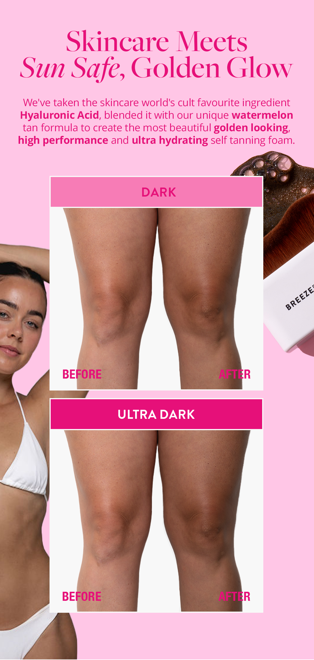 Purified water, Dihydroxyacetone (DHA), Witch Hazel (Hamamelis virginiana) extract, Butanediol, Glycerine, Aloe vera (aloe barbadensis) extract, Cocamidopropyl betaine, PEG-12 Dimethicone, Crosspolymer, Sodium Cocoamphoacetate, Glycerin, Lauryl Glucoside, Sodium Cocoyl Glutamate, Sodium Lauryl Glucose Carboxylate, Green Tea extract, Watermelon extract , Coconut Oil , Camellia extract, Hyaluronic acid, Erythrulose, Phenoxyethanol, Fragrances, D-panthanol, Sodium metabisulphite.