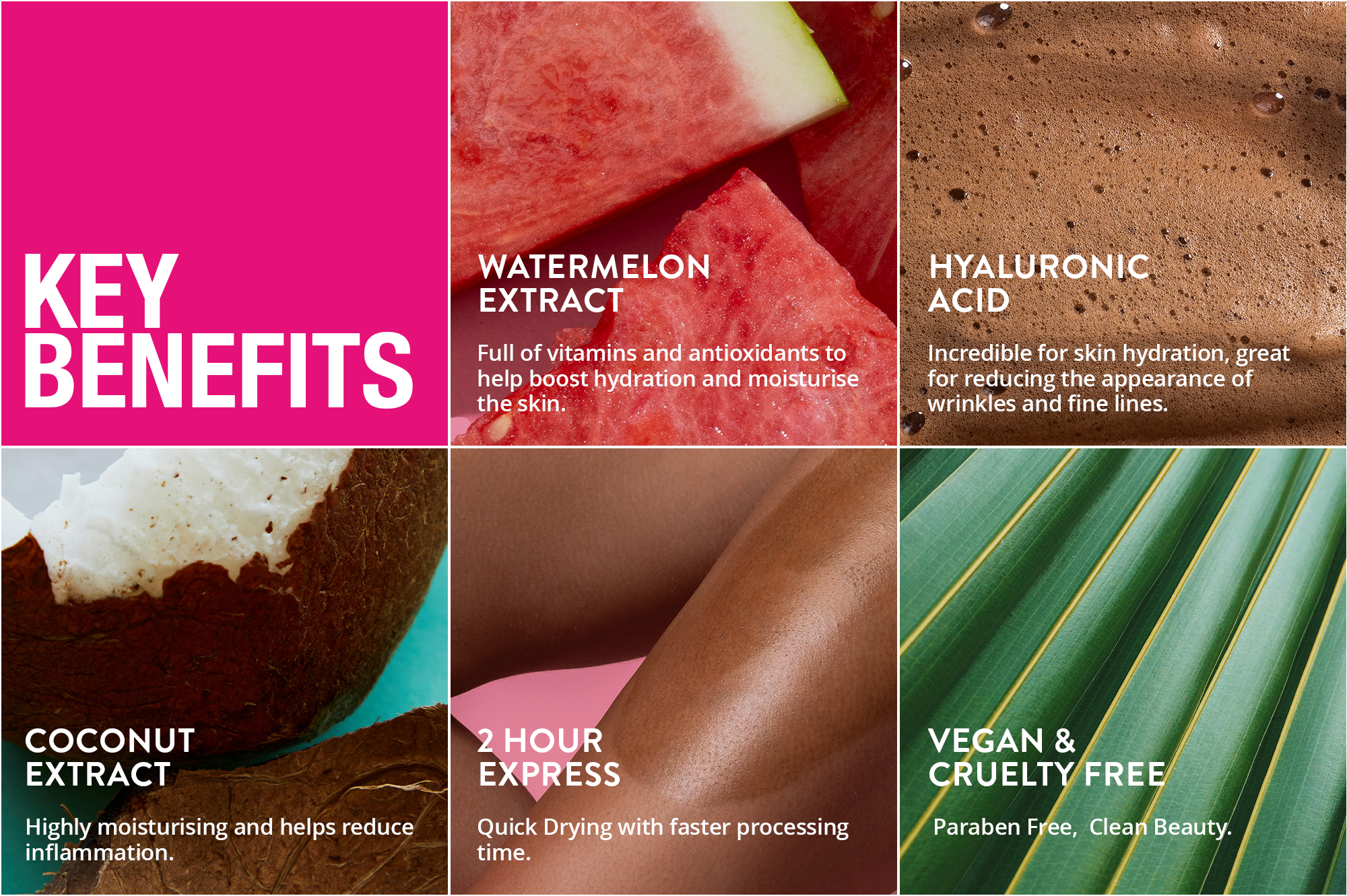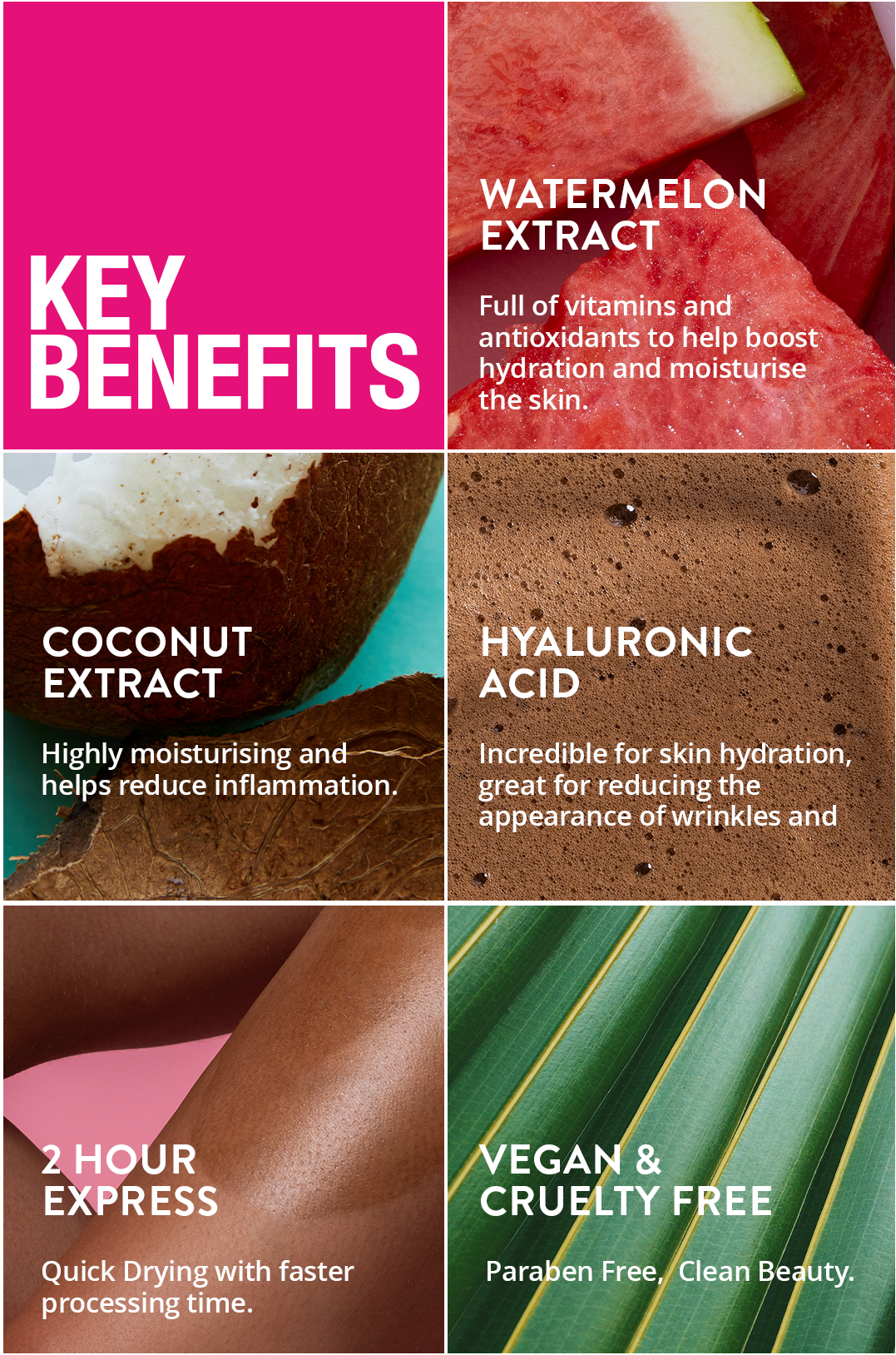 WATERMELON EXTRACT - Full of vitamins and antioxidants to help boost hydration and moisturise the skin.